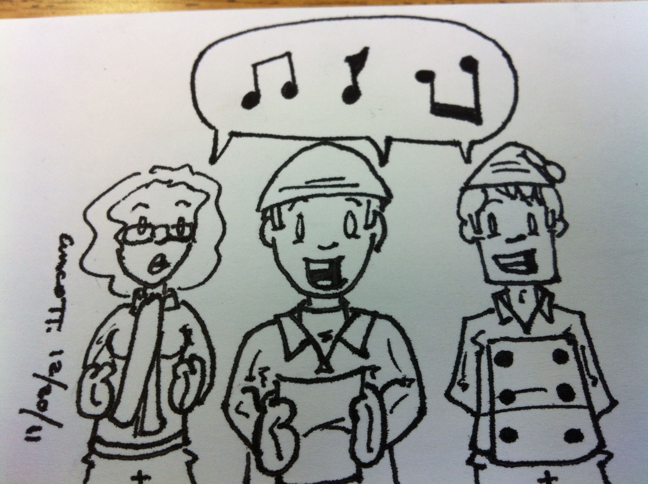 Anyway, the weather’s not particularly cold here today, but I thought a group of bundled-up carolers might be just the ticket anyway.