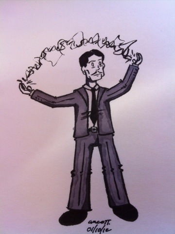 My wife is off at her monthly nutritionist appointment, so I’m hanging out down the road at the Dunkin Donuts (yes, I recognize the irony. The tasty, tasty irony). I had a bit of time to kill, so I figured I’d draw something. Ended up with a sketch of eccentric electrical wiz Nikola Tesla. Around our house, it’s definitely Team Tesla.