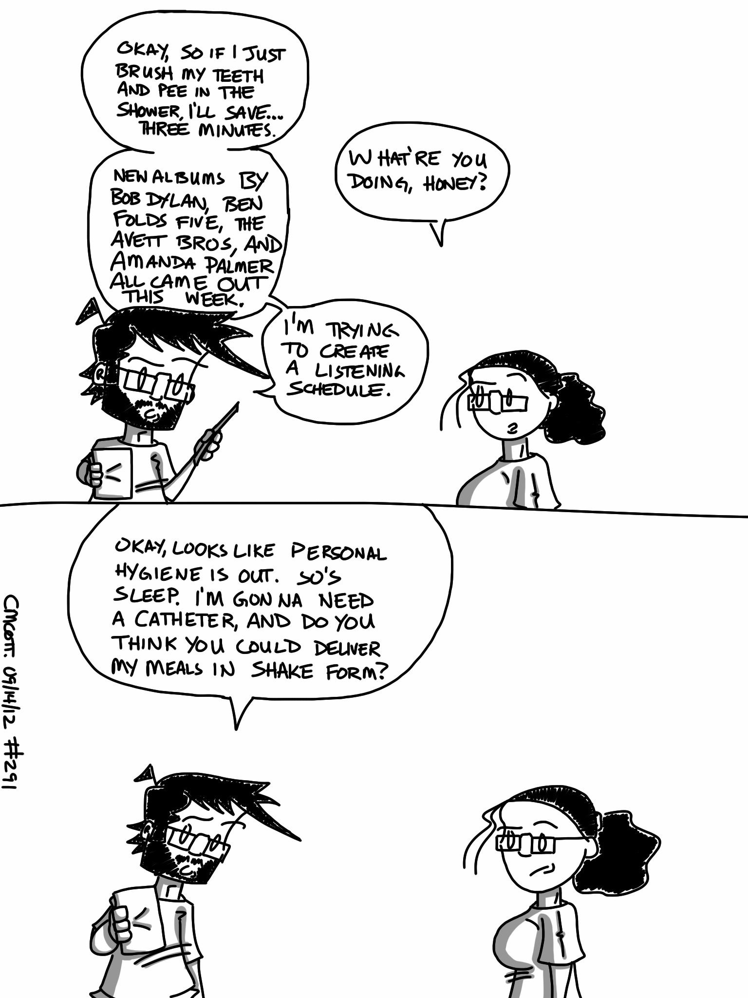 Seriously, since last Friday, there’ve been four new albums that have come out that I have to listen to. So far, I’ve been able to give a couple spins to the new Dylan and the new Amanda Palmer, but not the BF5 or Avett Bros albums. It felt like nothing of consequence was going to come out for most of this year, then four must-listen albums come out at the same time? Well played, universe. Well played.