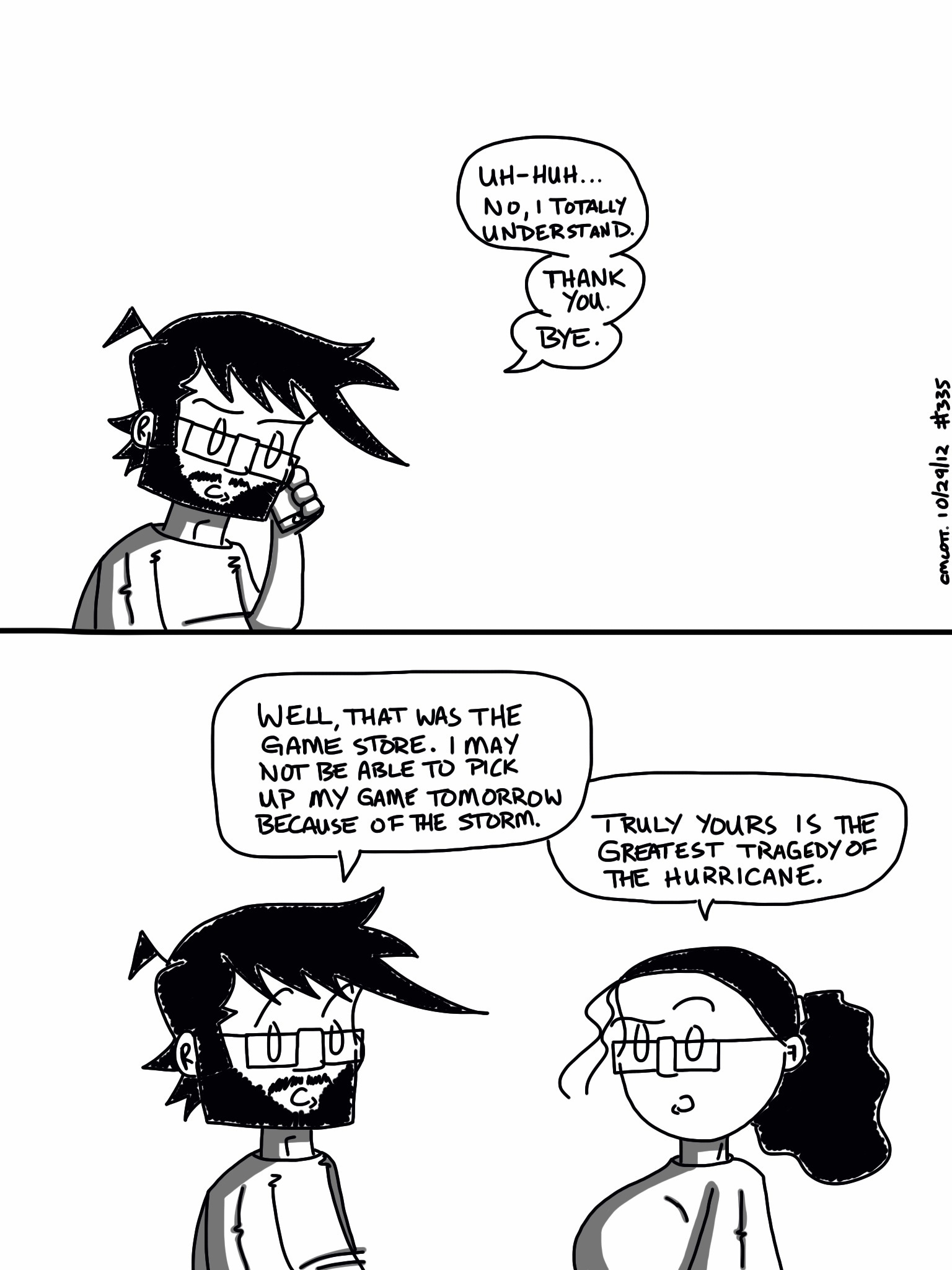 I think, really, the main difference between the two is that Ezio still found some joy in life, and I haven’t seen any of that from Connor yet. Admittedly, still not that deep into the game, so there’s time for it to develop. I do like many of the changes they’ve made in the game, though the revised combat system has taken some getting used to (especially as I was playing the original Assassin’s Creed in the days running up to AC3’s release). I like the new blending/hiding system, and the eavesdropping system is interesting if not always easy to pull off correctly. All in all, I’m pretty pleased with the game, and it remains the only game series I will automatically plunk down $60 for and even bother with pre-ordering.
