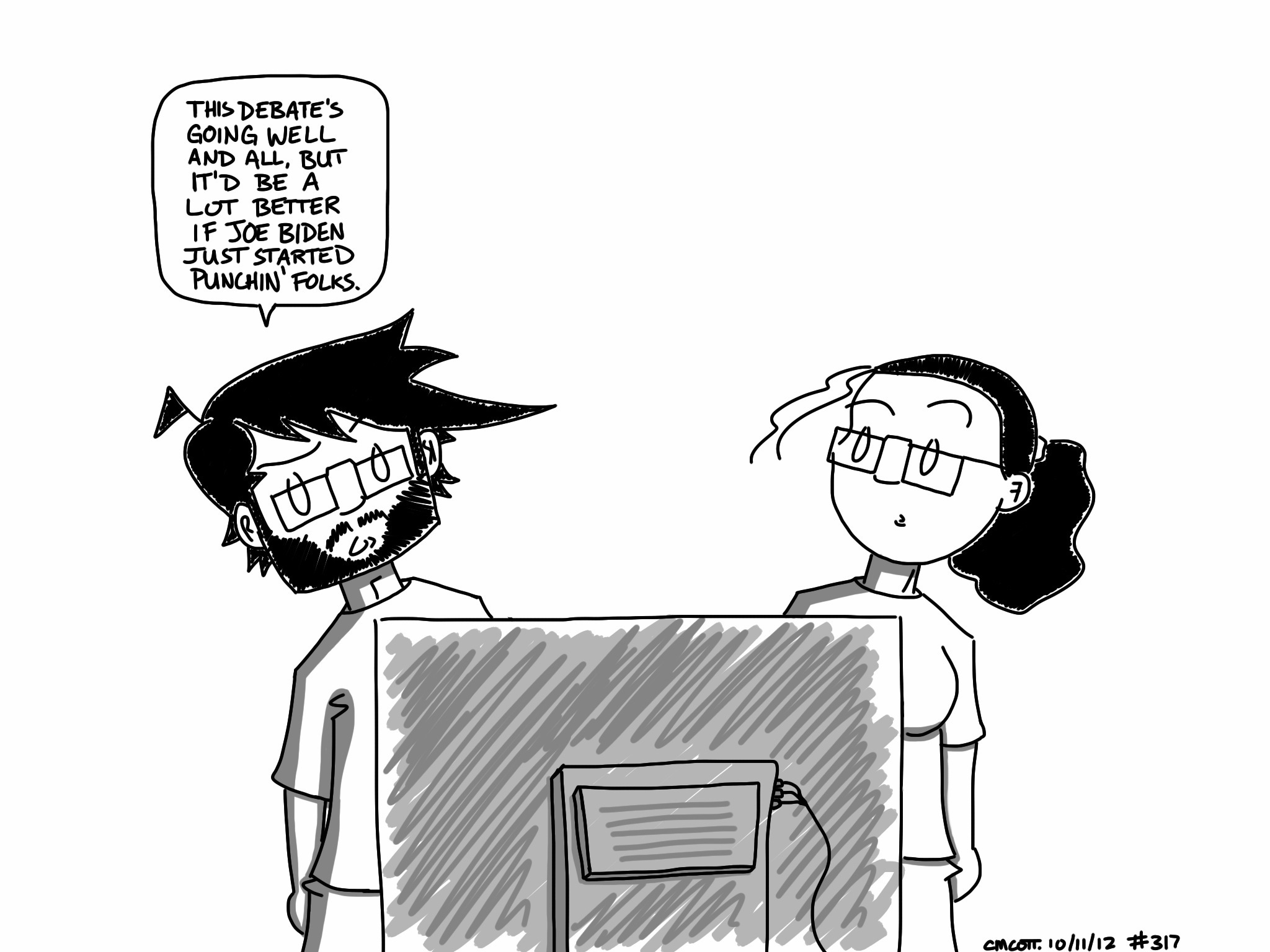 1. I’ve avoided the debates whenever possible, but I think I’d tune in if they just started boxing it out.