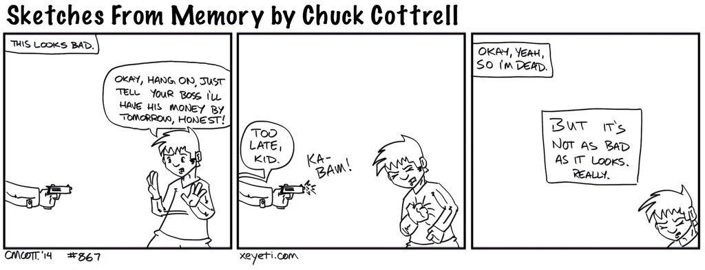 I’m in Oklahoma visiting family all this week and the next, so expect the comics to be about that. I’ll do updates this weekend to make up for missing comics.