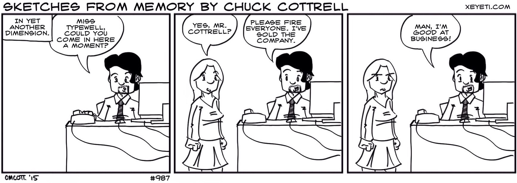 #987 – The ’80s Business Douche Universe January 28, 2015 | xeyeti Man, I’d be the best ’80s business guy. Share this: Click to share on Tumblr (Opens in new window) Tumblr Click to share on X (Opens in new window) X Click to share on Facebook (Opens in new window) Facebook Like Loading... Related