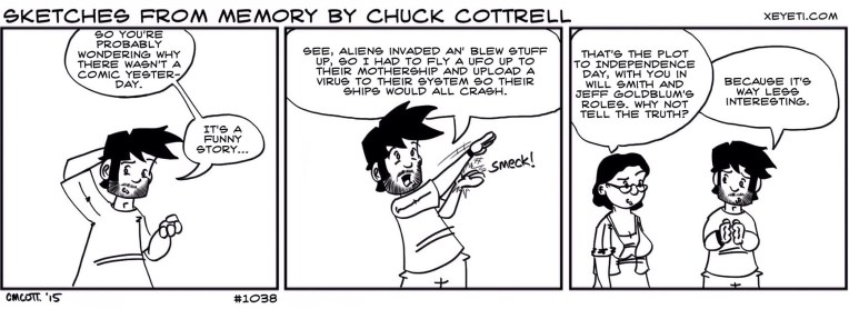 So, my iPad had to run an update Wednesday night, but first I had to run an update on my laptop, so it was close to midnight before I could even update the iPad. So, needless to say, I didn’t get a comic drawn that night. I’ll update on Saturday and Sunday to make up for it.