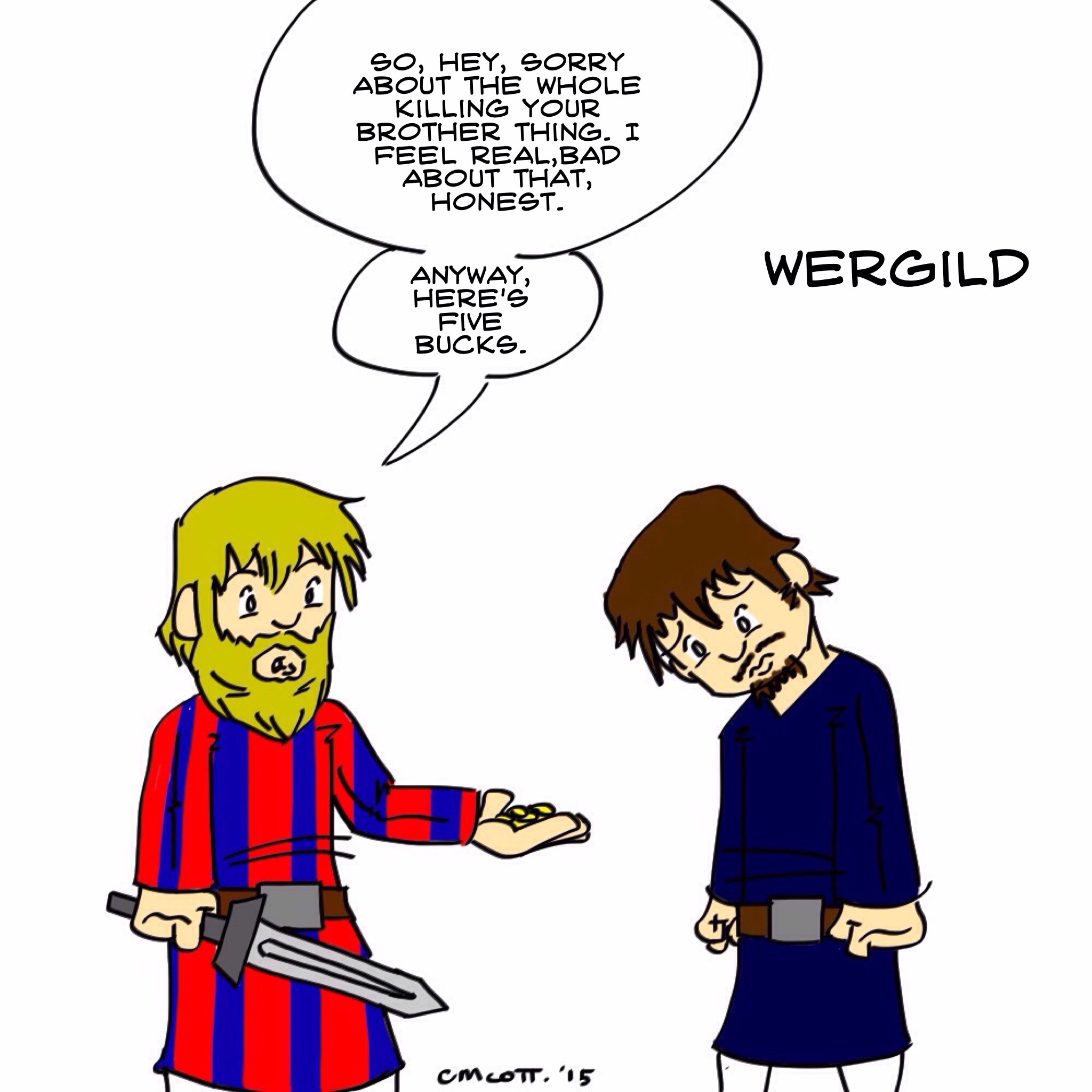 #1063 – Wergild May 12, 2015 | xeyeti Drew this to put in a PowerPoint presentation for one of my classes today. Pretty pleased with how it turned out. Share this: Click to share on Tumblr (Opens in new window) Tumblr Click to share on X (Opens in new window) X Click to share on Facebook (Opens in new window) Facebook Like Loading... Related