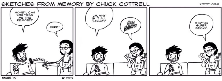 #1078 – Jam Hands June 2, 2015 | xeyeti Always so sticky. Share this: Click to share on Tumblr (Opens in new window) Tumblr Click to share on X (Opens in new window) X Click to share on Facebook (Opens in new window) Facebook Like Loading... Related