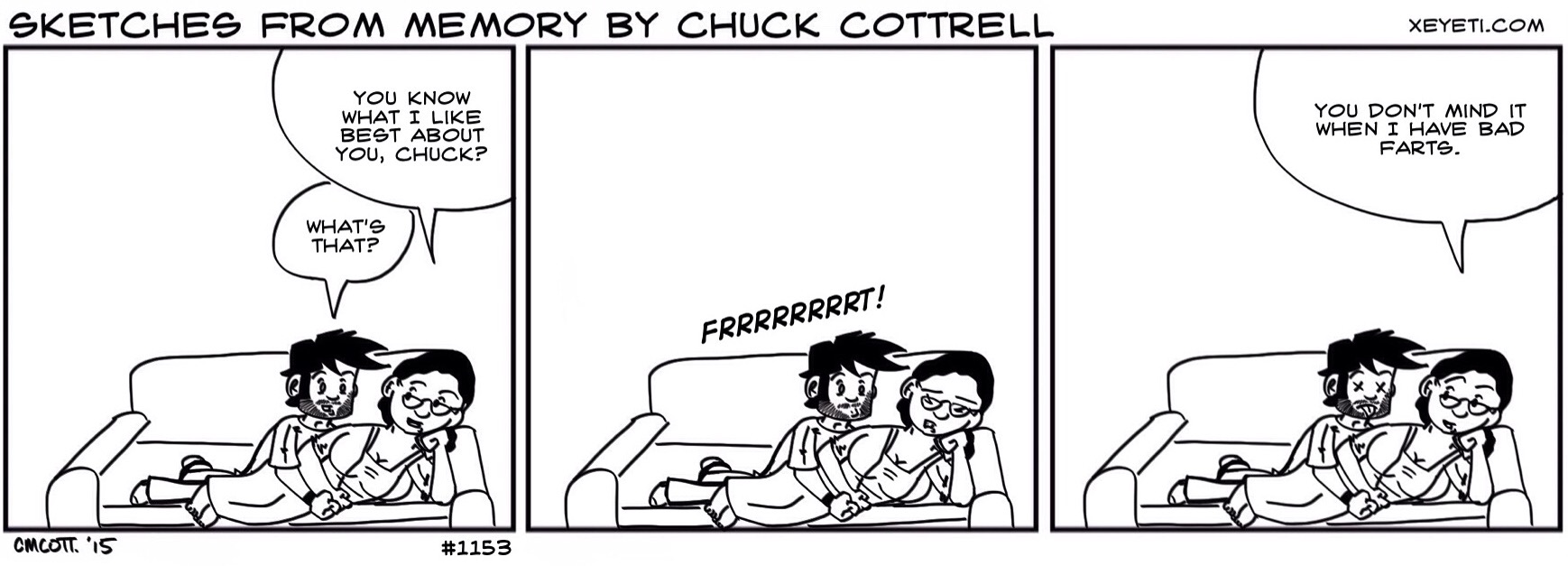 #1153 – True Love is Tolerant September 16, 2015 | xeyeti Like, super tolerant. And slightly stinky. Visit and support the Patreon! Help me make more comics and stuff. Share this: Click to share on Tumblr (Opens in new window) Tumblr Click to share on X (Opens in new window) X Click to share on Facebook (Opens in new window) Facebook Like Loading... Related