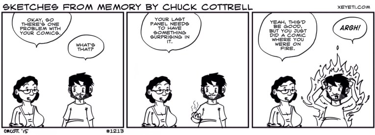 #1213 – Surprise December 9, 2015 | xeyeti The Wife has lots of useful advice. Share this: Click to share on Tumblr (Opens in new window) Tumblr Click to share on X (Opens in new window) X Click to share on Facebook (Opens in new window) Facebook Like Loading... Related