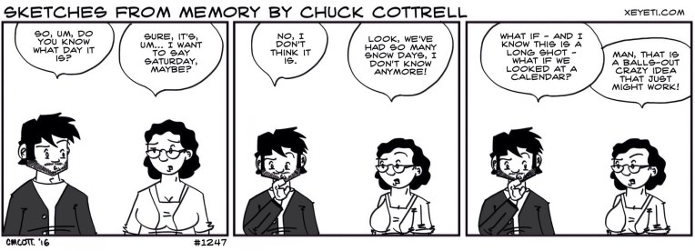 #1247 – Snow Days of Our Lives January 26, 2016 | xeyeti Like snowflakes in the air, these are the snow days of our lives.