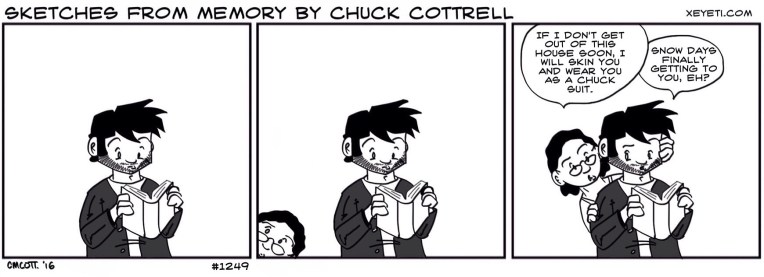 #1249 – Snow Crazy January 28, 2016 | xeyeti Out all this week, out last Thursday and Friday…we may never get to school again. Share this: Click to share on Tumblr (Opens in new window) Tumblr Click to share on X (Opens in new window) X Click to share on Facebook (Opens in new window) Facebook Like Loading... Related