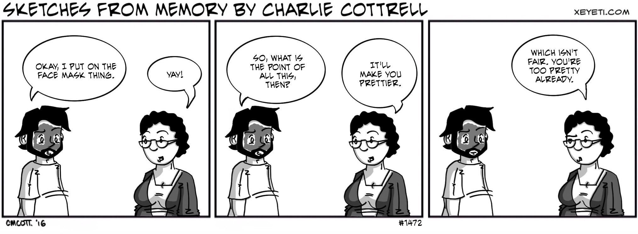 #1472 – Face Mask December 6, 2016 | xeyeti Michelle made me put on some face mask clay stuff the other night. My skin feels amazing now. Share this: Click to share on Tumblr (Opens in new window) Tumblr Click to share on X (Opens in new window) X Click to share on Facebook (Opens in new window) Facebook Like Loading... Related