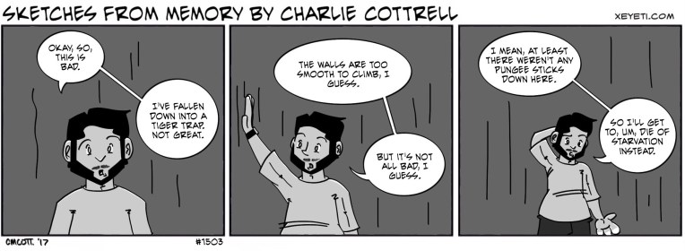 Into every life a little pit trap must be fallen into. Or something. I dunno, I haven’t really slept since Saturday.