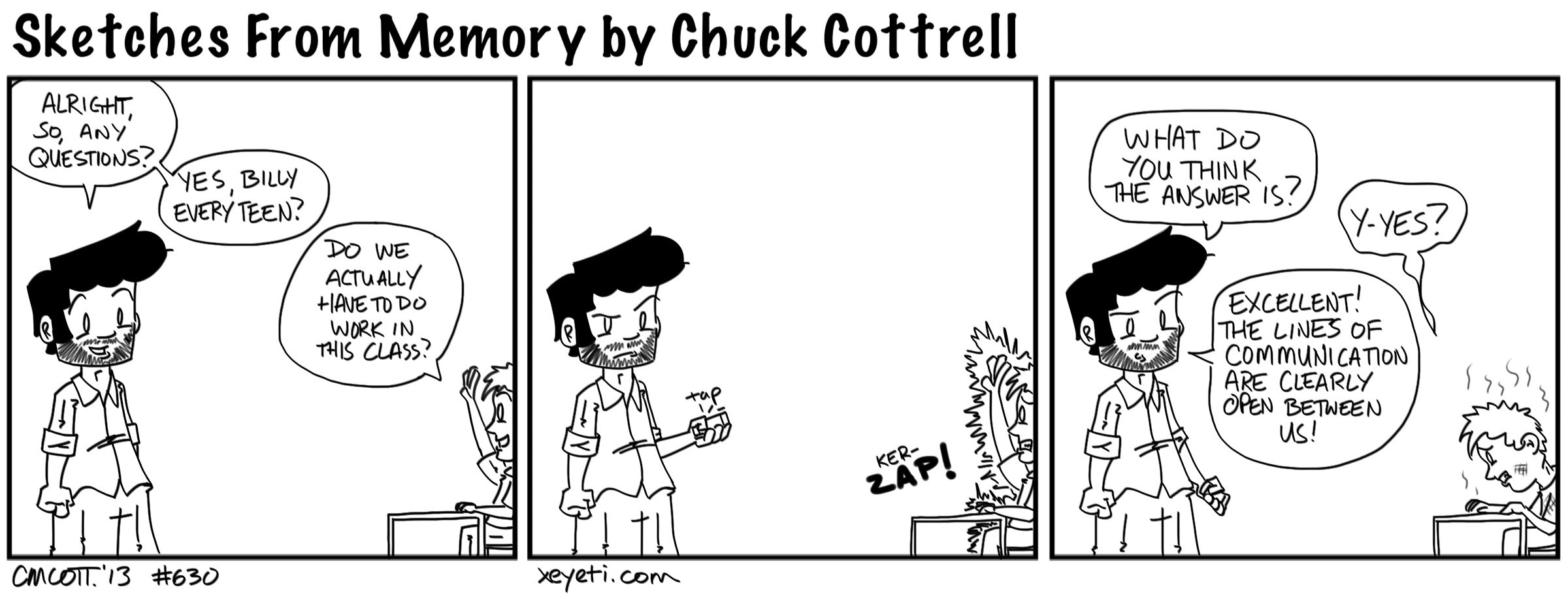 Never fails: first day back from a break, some kid always asks, “Do we have to do work today? We just got back from break.” And then I murder them.