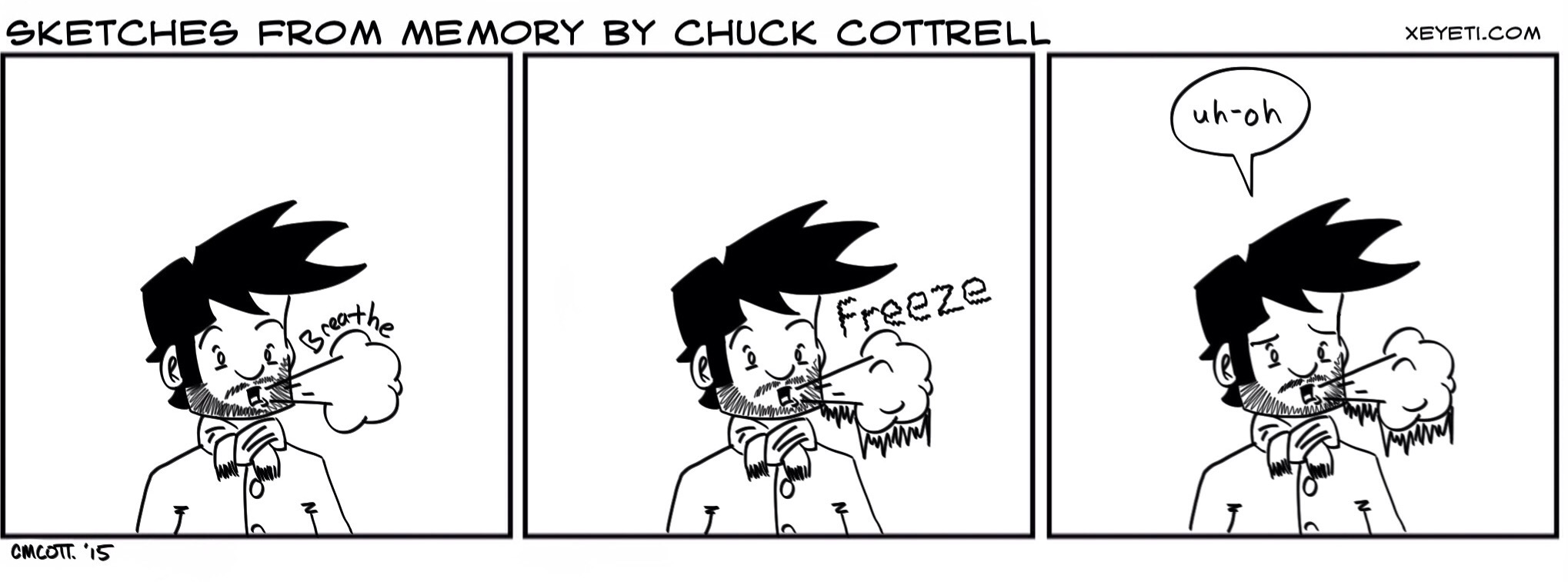 #973 – How Cold Is It? January 8, 2015 | xeyeti So cold your breath will freeze! Or school will have a delayed opening in the morning.