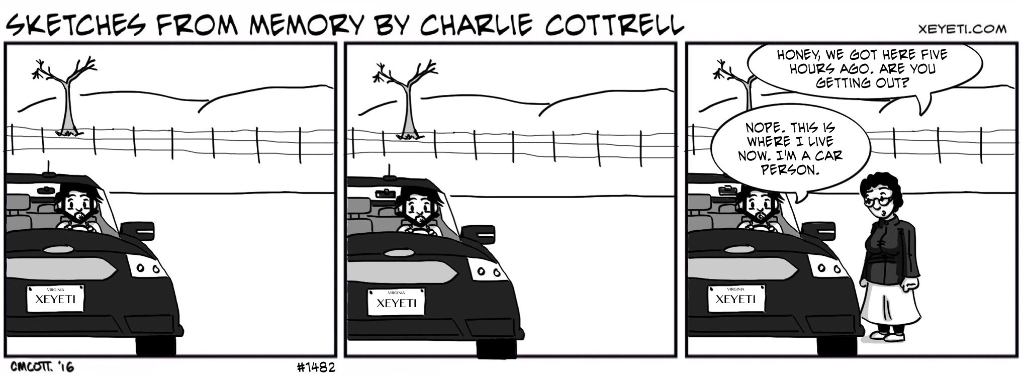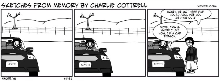 As you can see, the comic isn’t quite done, and it’s late and I still have miles to drive tomorrow. So, here’s the rough draft – the blue “pencil” layer – and my basic inks. Still have to fill in the hair and do the shading and all that, add the real dialogue bubbles and text, but at least I don’t leave you hanging like last week. I’ll finish this when I get home in the evening and upload the final product.