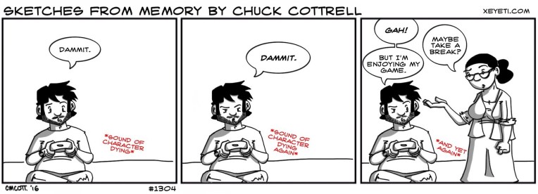 #1304 – Enjoyment April 13, 2016 | xeyeti I love playing video games, but I am frequently quite bad at them.