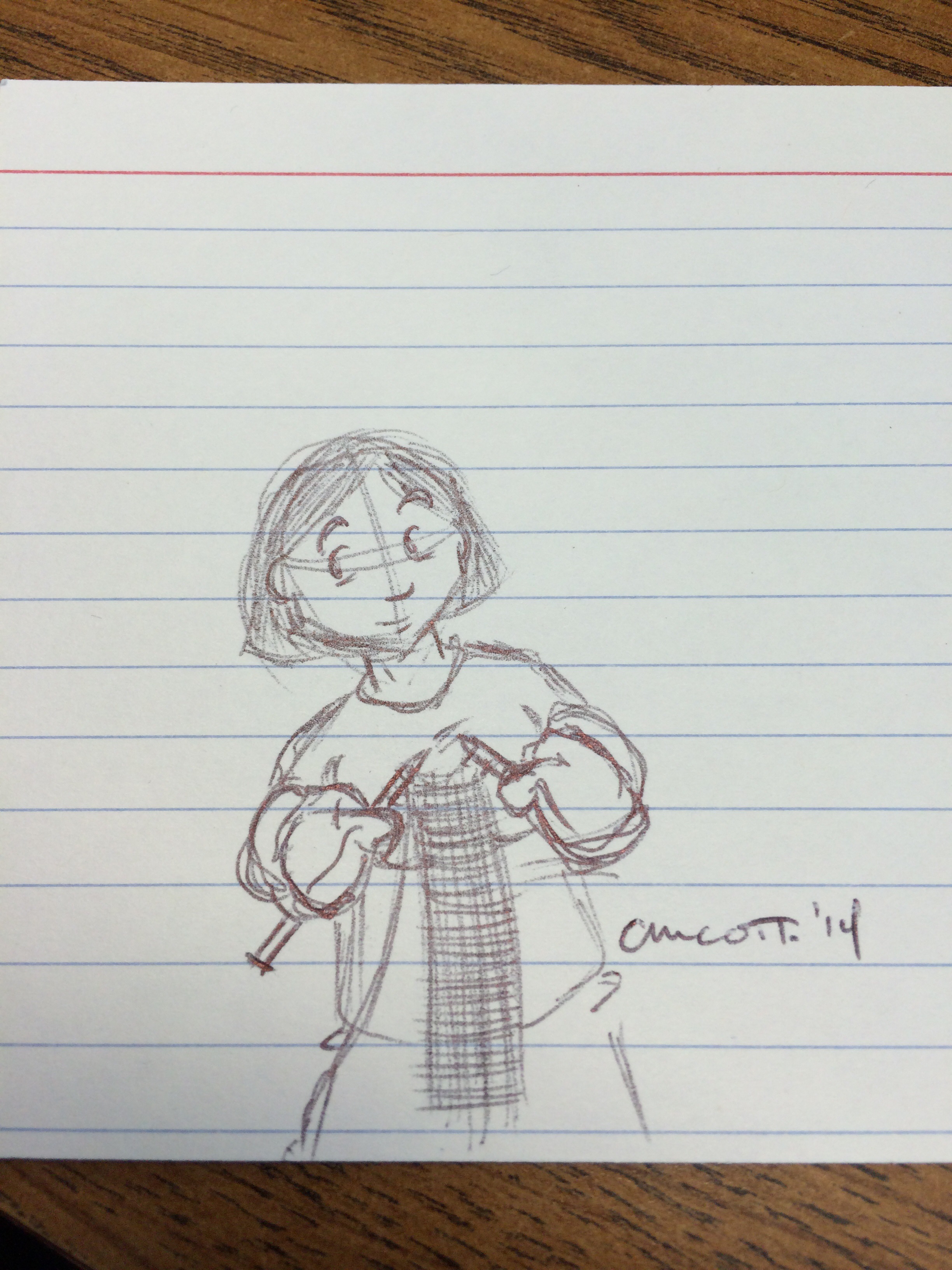 Weekend Update #69 – Knitting April 11, 2014 | xeyeti A quick doodle from lunch the other day. Hurray for knitting!