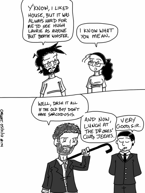 So tonight was the last episode of House. I feel like I watched the last couple of seasons out of momentum more than anything else. I would watch the hell out of Bertie Wooster, MD, so if Fry and Laurie want to get to work on that, I’m right there with them.