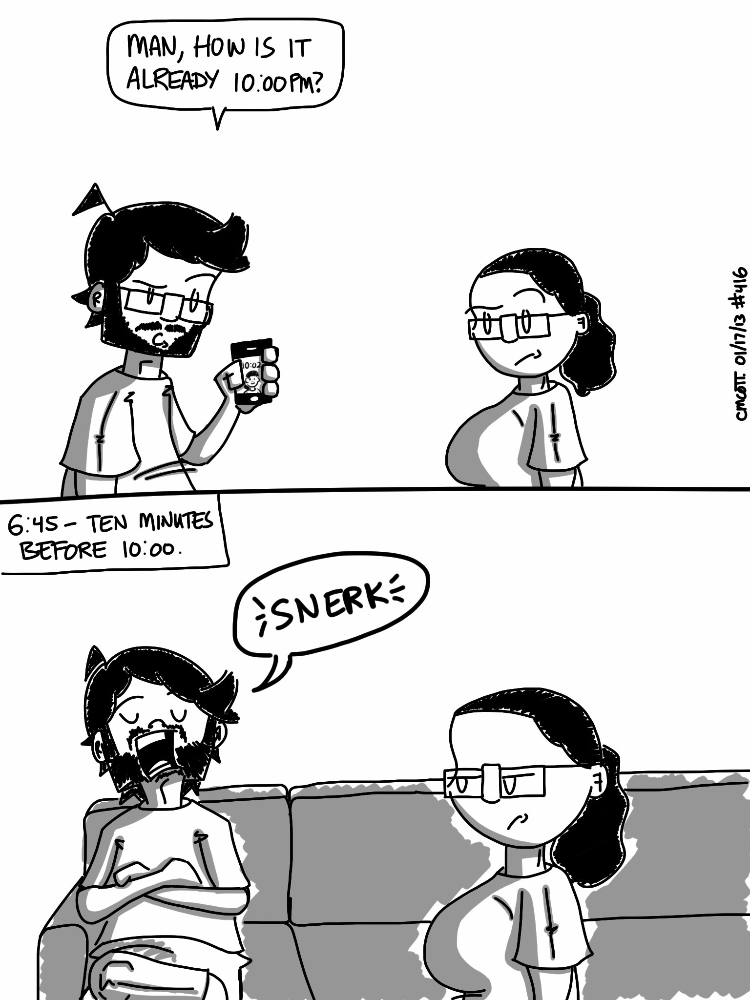 Sketch a Day, Day 416 January 17, 2013 | xeyeti I’ve been taking a lot of naps lately, which causes me to have trouble falling asleep at night. Which causes me to take naps when I get home from work. Cycles suck, is what I’m saying.