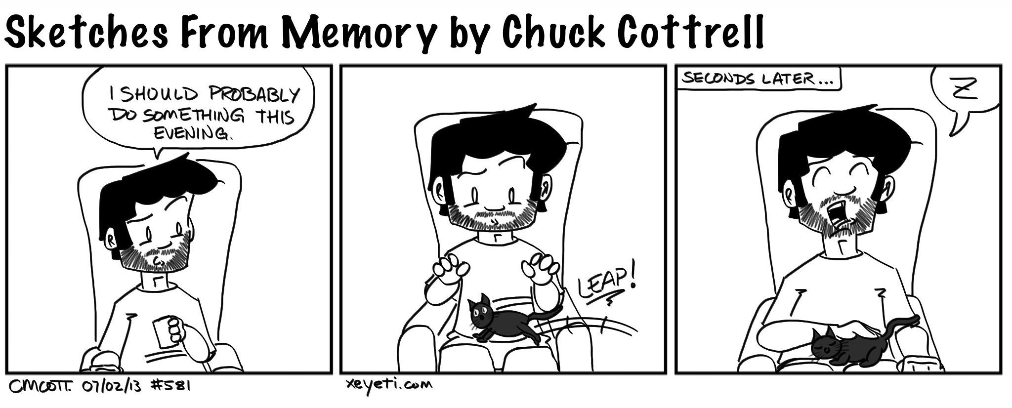 Sketch a Day, Day 581 July 2, 2013 | xeyeti Cat slept on me, so I took not one but two naps this evening.