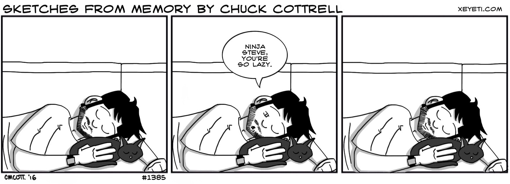 #1385 – Lazy Cat August 4, 2016August 4, 2016 | xeyeti Ninja Steve is the laziest, cuddliest cat in the world. Patreoooooon!