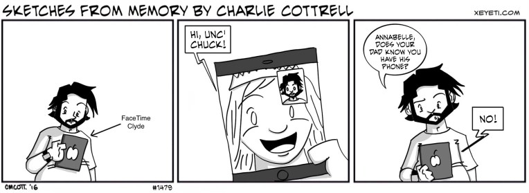 The other night, while I was drawing, I got a FaceTime call. Thinking it was my brother, I accepted, only to be confronted with the grinning face of my four-year-old niece. She proceeded to spend he next ten minutes taking me on a tour of the house while talking about the play date she’d had with some friends the day before.