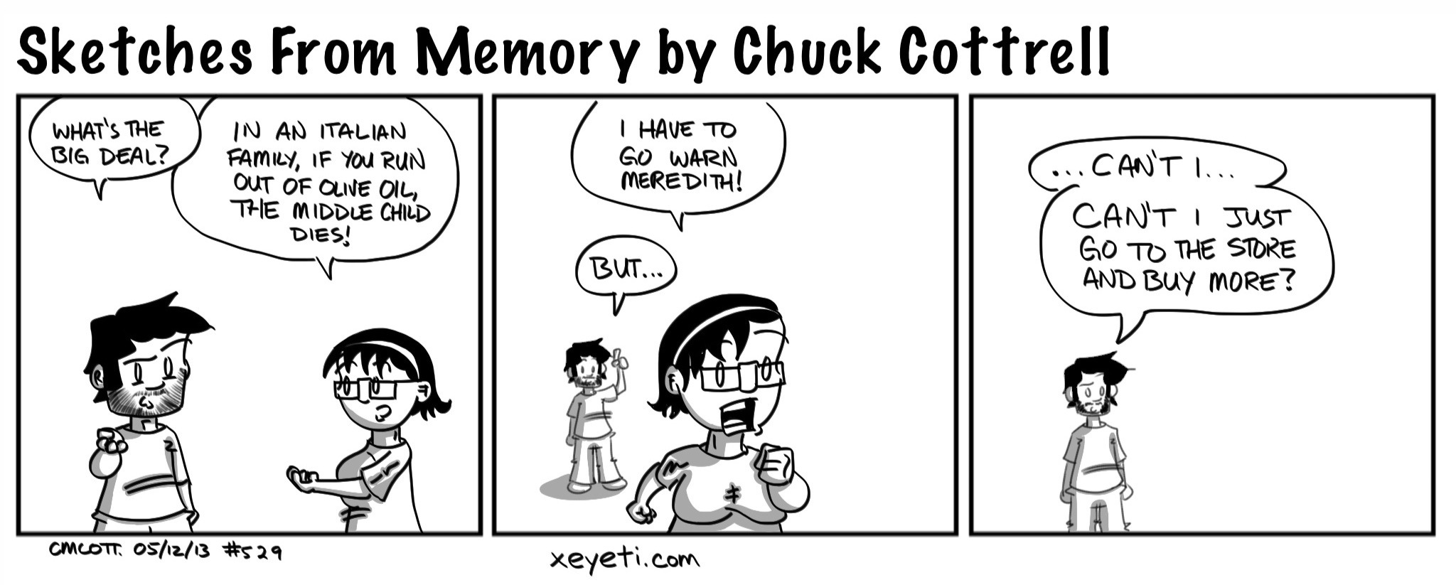 Sketch a Day, Day 528 May 11, 2013May 11, 2013 | xeyeti Italians apparently take their olive oil very seriously.