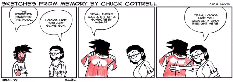 #1130 – Fun in the Sun August 16, 2015 | xeyeti We took the students to a water park for the last day of summer school. I was not great at applying the sunscreen.