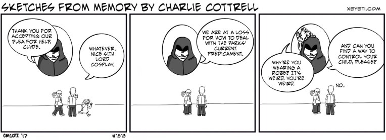 #1513 – Trail Police Omega, Part 3 February 1, 2017 | xeyeti Toddlers can get into everything and have no respect for the narrative conventions of shadowy cabals.