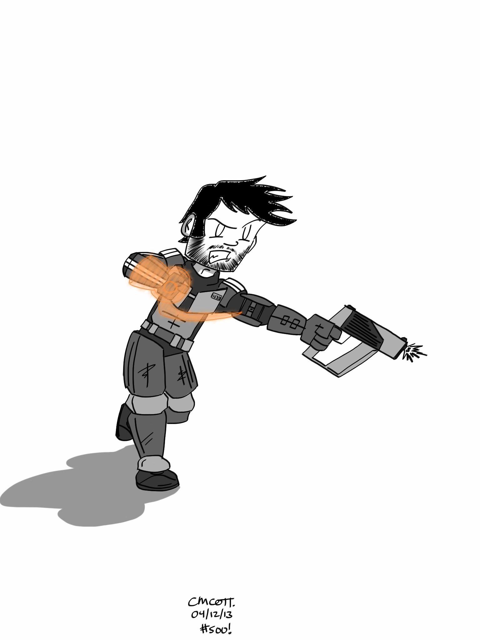 Hadn’t realized tonight’s sketch was #500. It’s late now, though, and I’m tired, so here’s the pencils for a sketch of me as Commander Shepherd from the Mass Effect series (though I play as Fem Shep). I’ll ink the thing tomorrow, maybe throw in some color, even.